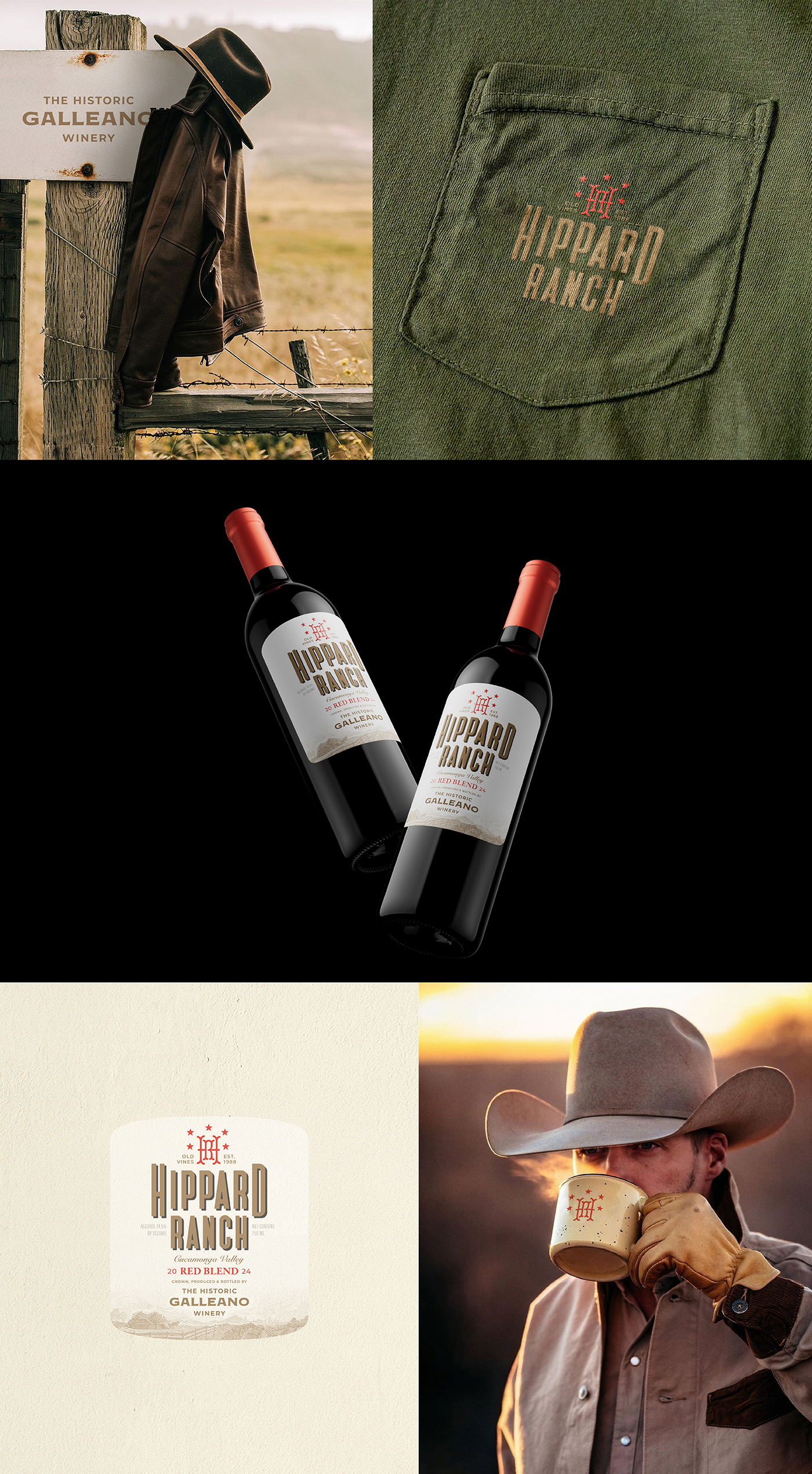 Hippard Ranch is a wine label designed for a vineyard owned by the historic Galleano Winery in California’s Cucamonga Valley.