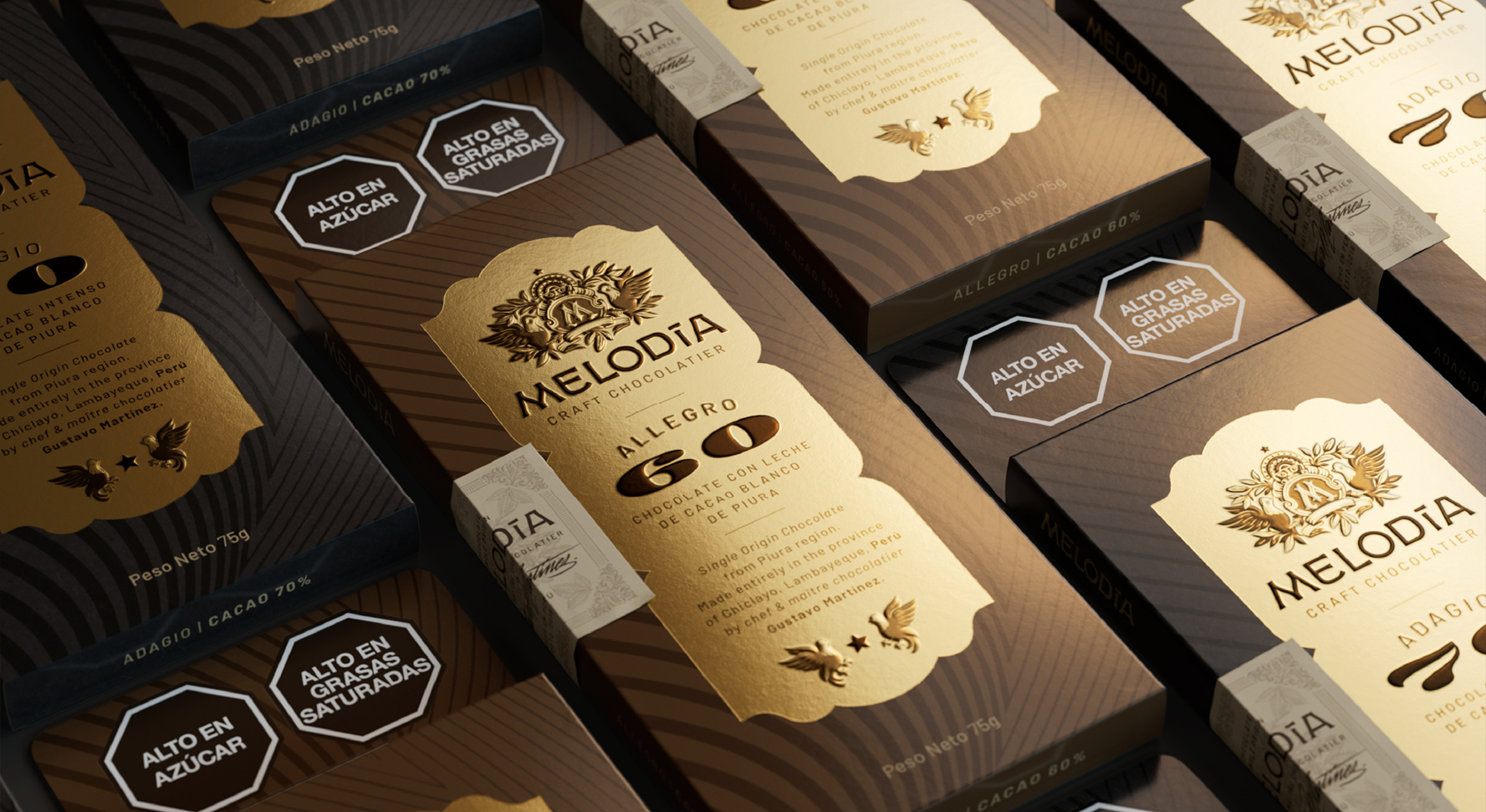 To reflect Melodía’s high standards, we developed a visual universe inspired by European classical music and heraldry. Just as an orchestra requires the finest instruments and precise coordination to achieve a masterpiece, the chocolate-making process demands balance and exceptional inputs.
