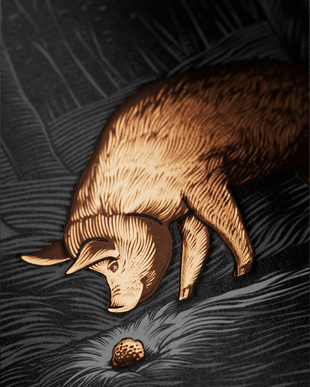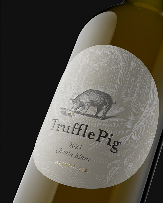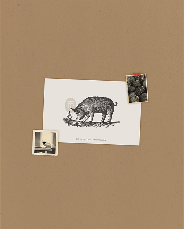 Rather than relying on traditional heraldry, we developed a high-impact illustrated mark that serves as the brand’s emotional anchor. The ‘Truffle Pig’ is treated not as a mascot, but as a sophisticated, iconic character that captures the spirit of discovery. This central figure is integrated into an illustrated scene on every label, providing a rich visual context that goes beyond a simple graphic mark.